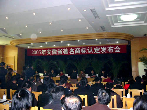 2006年1月10日上午,2005年安徽省著名商标认定发布会在合肥八一宾馆隆重举行,省政府文海英副省长及省工商局领导出席本次发布会。根据《安徽省著名商标认定与管理办法》的规定,由安徽省著名商标评审委员会审议,并经安徽省工商局局长办公会议审定,我公司“中德”等111件商标为2005年安徽省著名商标(其中马鞍山市共有5件商标入选),有效期自2006年1月起至2009年12月底止。