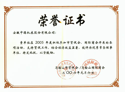我公司获2005年度市贸促会、国际商会优秀常务理事单位