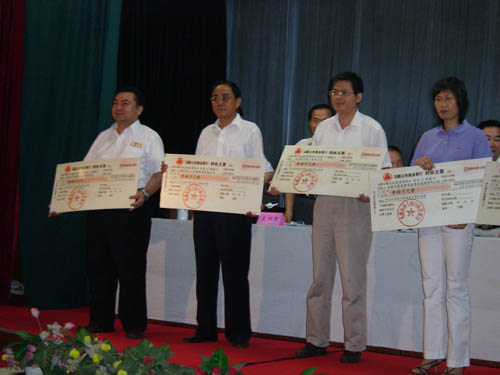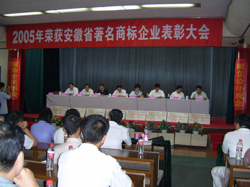 2006年7月26日下午,马鞍山市2005年获省著名商标企业表彰大会在市政府东二楼会议室举行,出席本 次会议的主要领导有省工商局副局长黄家华、市人大常委会副主任杜永田、市政府副市长刘荣华、市政协 副主席孙文植、市政府副秘书长王兴无、省工商局商标局局长刘国建等。