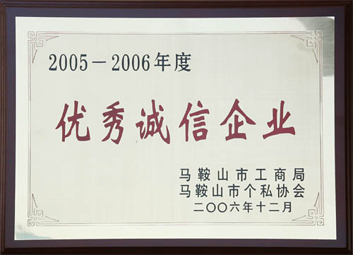 我公司获市工商局“05-06年度优秀诚信企业”称号