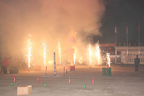 2007年2月22日(农历正月初五)晚8点,一年一度的焰火表演在中德公司内隆重上演,绚丽的焰火扮靓了中德公司的夜空,一枚枚烟花弹绽放出五彩缤纷的图案,给公司员工及前来观赏的游人带去了新春的祝福。焰火表演持续了将近一个小时,公司相关高层、驻外办事处负责人及部分员工代表参加了本次活动。