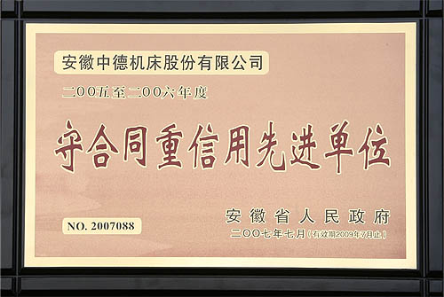 被安徽省人民政府授予2005-2006年度“守合同重信用先进单位”这一称号。这也是我公司继由马鞍山市工商局、市人民政府、省工商局多次授予此类称号后,再次获得的更高级别的荣誉。