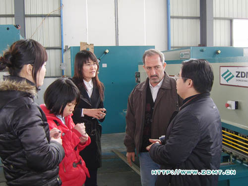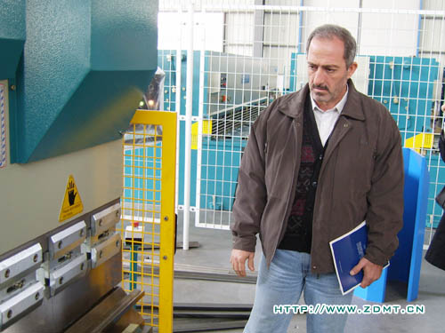 Haiyl A.AI Rawy先生对中国机械行业尤其是剪板机折弯机非常的熟悉,他表示他们非常重视机器的质量,来中德也是由于中德机器在海内外都享有良好的声誉。参观前,Haiyl A.AI Rawy还特意询问我们在阿联酋有没有代理,当公司领导回答说目前还没有时,他释然一笑,表示希望能够与中德建立良好的合作关系。在中德的成品车间,Haiyl A.AI Rawy先生听取了我公司营状况及近远期规划的介绍,并就每一款机床的详细情况进行了介绍,重点询问了其性能及售价等。他对我们的数控折弯机尤其感兴趣,要求当场进行测试。Haiyl A.AI Rawy特意让自己的助理拍下了整个操作过程,在我公司工程师的帮助下,Haiyl A.AI Rawy还进一步了解了折弯机数控系统的编程方面的问题。
