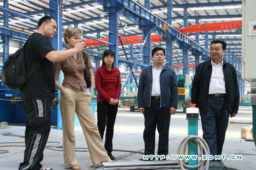 这位波兰客人对机械行业非常了解,她告诉我们,他们的工厂车间里正在使用欧美品牌的同类机器,对其使用和操作流程都非常的熟悉,当然,看机器的眼光也是相当的专业。这次中德行的目的主要是考察我们公司的大型双机联动折弯机。参观过我们的投入使用不久的大型装配车间后,客人立即表示对中德的生产规模和产品质量非常的满意,是一家值得信赖和合作的优秀制造商,客人希望以后能够代理我们的产品以期与我们建立长期合作的贸易关系。