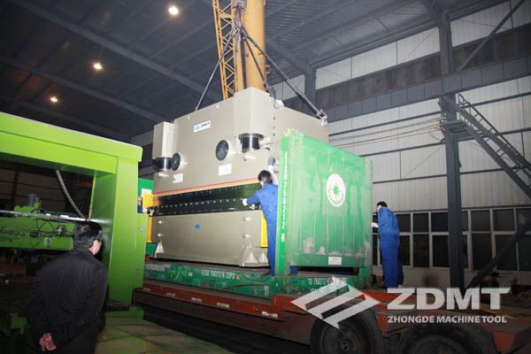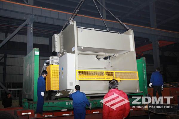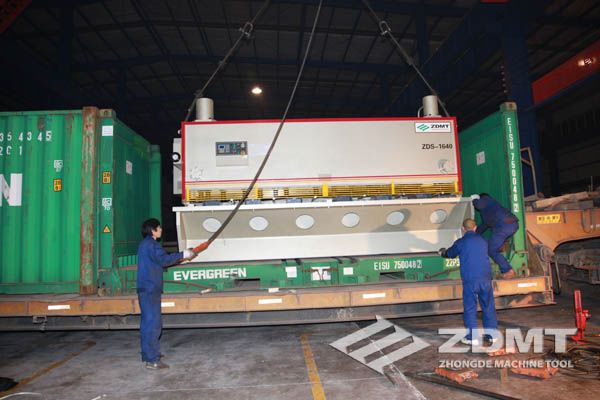 公称压力500吨的数控折弯机和剪切能力16毫米的数控闸式剪板机分别超过30吨和20吨,外形尺寸完全超过了普通集装箱的尺寸。像这种类型的机器在国内发货很平常,但是对于出口来说情况却完全不同。由于框架箱运输的特殊性以及海运运输的风险性,对机器的包装和捆扎是对工厂的新考验。
